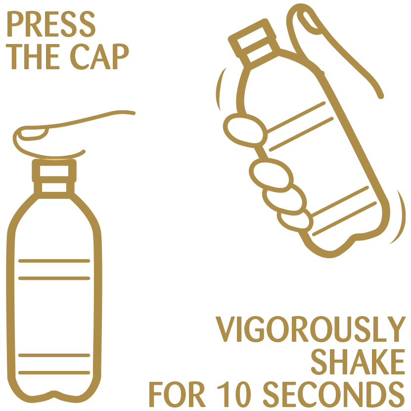 Simply press it so that the powders come into contact with the water and shake the bottle to dissolve the active ingredients.