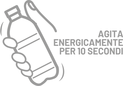 Prima dell’apertura premi il tappo ‘PUSH&MIX’ e agita energicamente la bottiglietta per almeno 10 secondi.